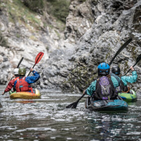 Da das Wildwasser stark verblock und teilweise sehr gefällstark ist, empfehlen wir einen wendigen Creeker (z.B. Lettmann THP, Pyranha ReactR, Waka OG etc.). Einen Halfslice würden wir eher nicht empfehlen, sollte ein Ripper oder eine Machete aber das Boot sein, in dem du dich besonders wohl fühlst, dann brings halt mit 😉